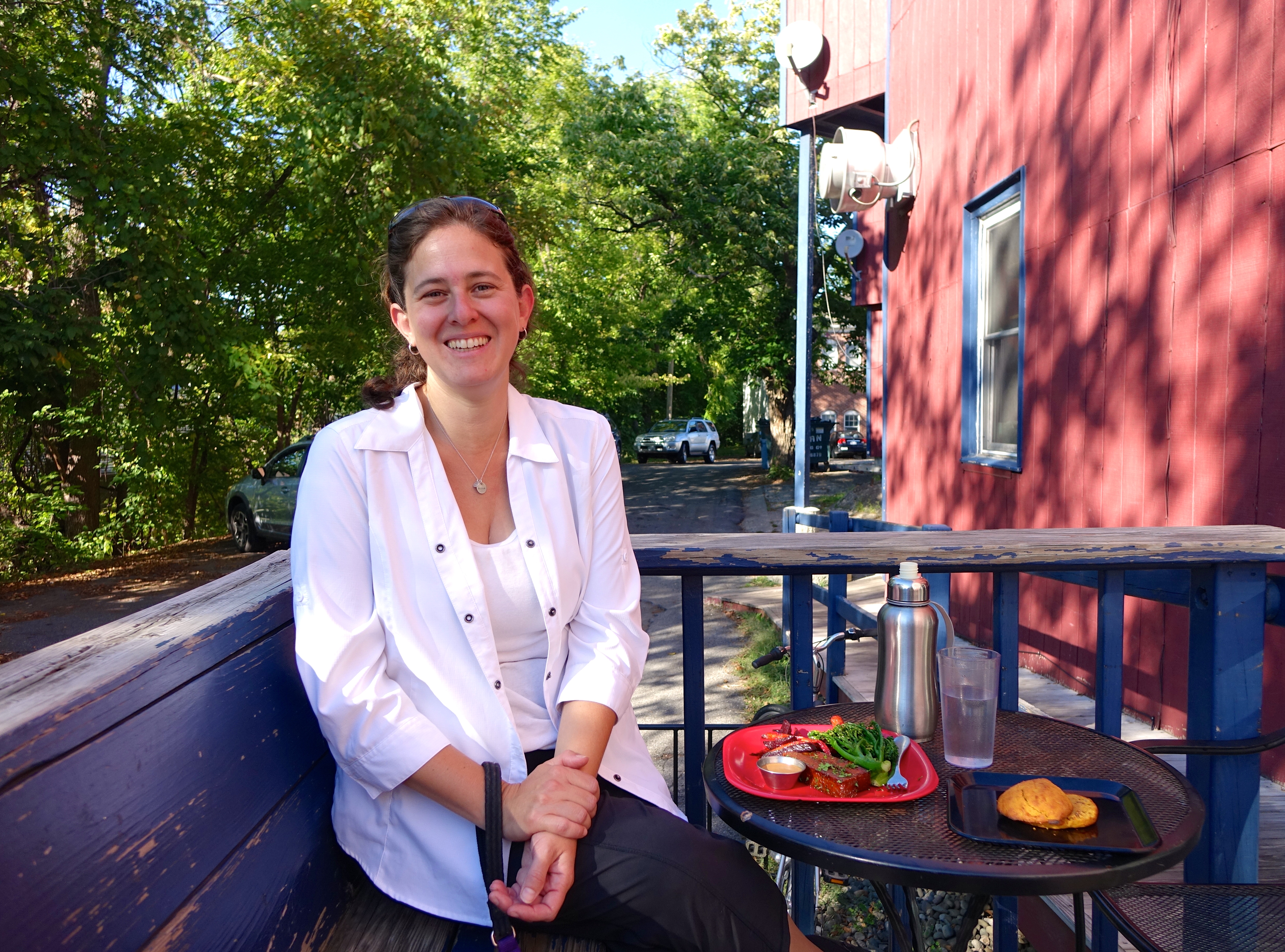 I interviewed a woman in a cafe in New Paltz and took her photo on 9/15/15.